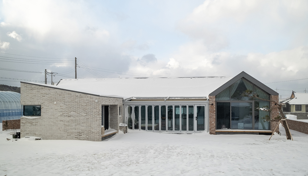 백고와 적고 벽돌이 어우러져 특색을 살린 함평 주택은 일상 속 휴식을 즐길 수 있는 전원 주택으로 부부의 라이프 스타일이 고스란히 담아 완성했다. 실용적인 공간 활용을 최우선으로 고려한 공간구성과 디귿자 형태의 안 마당을 감싸 안은 외관 디자인을 통해 실내외부의 유기적인 동선으로 연결된다.