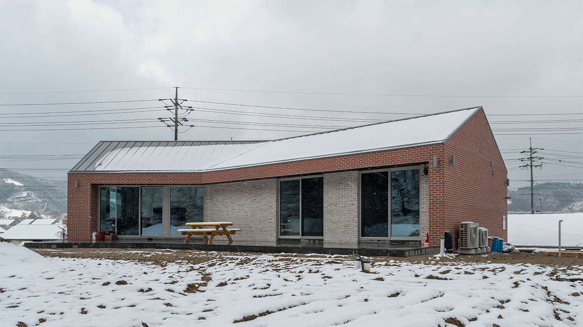 붉은 벽돌에 둘러싸인 'ㅅ'자 단층주택